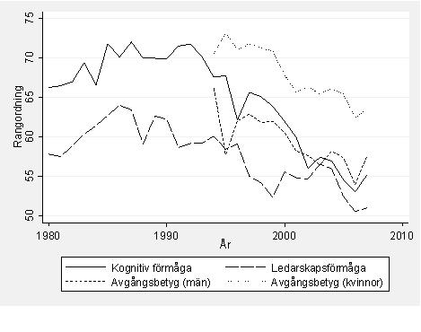 7. Alex: Även detta är mycket intressant och stämmer väl med vad jag vet om lärarlönernas utveckling under perioden. Det underliga är dock att inte nedgången kom tidigare om det primärt är lönen som ligger bakom denna. Den utveckling du beskriver skedde innan kommunaliseringen och började långt innan våra data visar att det händer något drastiskt med rekryteringen. Även Finland har haft samma relativa nedgång i lärarlönerna utan lika tydliga negativa konsekvenser.