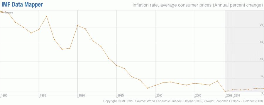 Samtidigt finns det ett annat perspektiv. Grekerna är knappast ovana vid en oansvarig stat som spenderar för mycket. Tack vare euron är det emellertid nu betydligt enklare för enskilda greker att skydda sig från följdverkningarna av detta. Genom att helt enkelt ta ut sina euro från banken och låsa in dem i ett kassaskåp har man effektivt skyddat dem både från inflation och konfiskation. Ett skydd som tidigare enbart fanns tillgängligt för en finansiellt sofistikerad elit finns nu i var mans hem. De historiska siffrorna över den grekiska inflationen visar att det är svårt att bortse från den trygghet detta skänker.