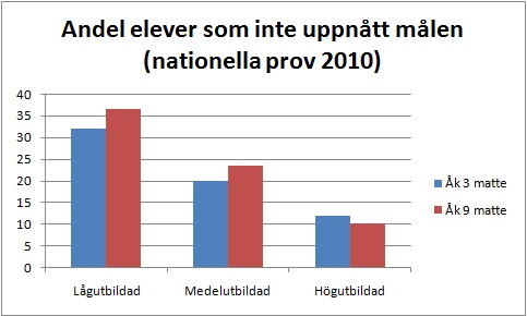 Enligt Aftonbladet är ett undervisningsråd på Skolverket upprört över att det finns ett tydligt samband mellan föräldrarnas utbildningsbakgrund och elevernas resultat på de nationella proven redan i årskurs 3. Naturligtvis kan man uppröras över sociala skillnader, men är det verkliga den tidiga manifestationen av dessa som är upprörande? Trots allt har ju inte skolan haft så mycket tid på sig att kompensera för skillnader i hemmiljön när de nationella proven i årskurs 3 skrivs.