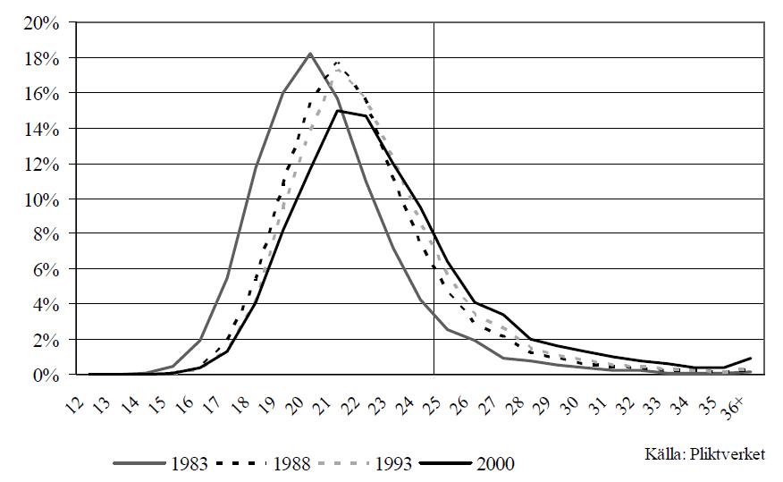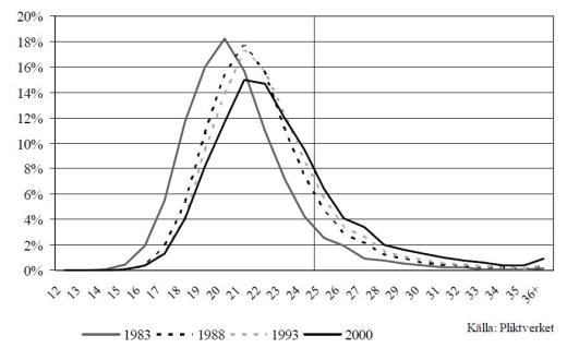 Bilden nedan visar BMI-fördelningen bland svenska mönstrande män mellan 1983 och 2000. Som synes blev svenskarna rejält mycket tjockare under den här perioden. Den här utveckligen och huruvida något bör göras åt den diskuteras i en ESO-rapport som presenterades förra veckan.