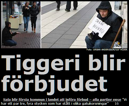 Ett annat exempel: tiggarna. När min kusinhustru från Schweiz besökte Sverige på mitten av 1990-talet utropade hon: – Men ni har ju inga tiggare! I Schweiz fanns de enligt henne sedan länge i storstäderna, medan vi i Stockholm inte sett dem på över ett halvt sekel. Men nu är de tillbaka. De finns överallt i storstädernas tunnelbanor och shoppinggator. I Sala ville man nyligen förbjuda tiggeriet, precis som skyltarna i trapphusen för hundra år sedan.