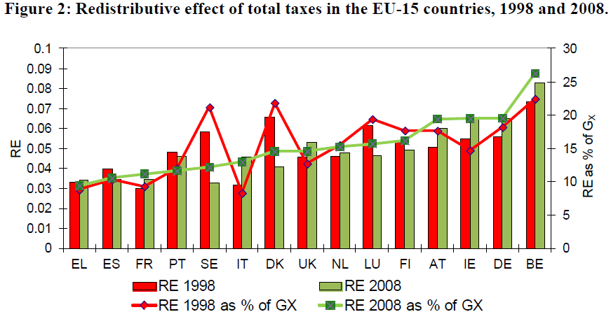 Det är två ledande forskare på skatte- och bidragssystem, Gerlinde Verbist och Francesco Figari, som har jämfört progressiviteten i inkomst- och förmögenhetsskatterna i EU:s femton rikaste länder 1998 och 2008. Deras analys bygger på mikrosimuleringsmodellen EUROMOD som innehåller samtliga länders regelsystem för skatter och transfereringar och även verkliga inkomst- och skatteutfall.