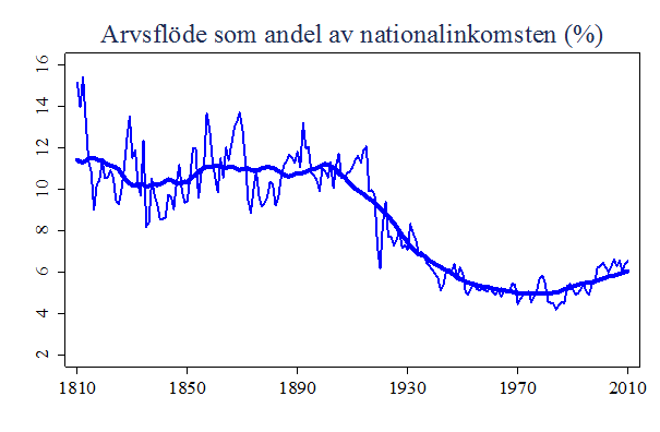 En central del i Thomas Pikettys bok Capital in the 21st Century och hans analyser av det privata kapitalets betydelse gäller hur viktigt ärvt kapital är i förhållande till egenhändigt intjänat kapital. Hans egna undersökning av situationen i Frankrike visar att arvsflödet motsvarade en femtedel av nationalinkomsten under 1800-talet, att dess betydelse sjönk kraftigt under … Fortsätt läsa Hur betydelsefullt är ärvt kapital i Sverige?