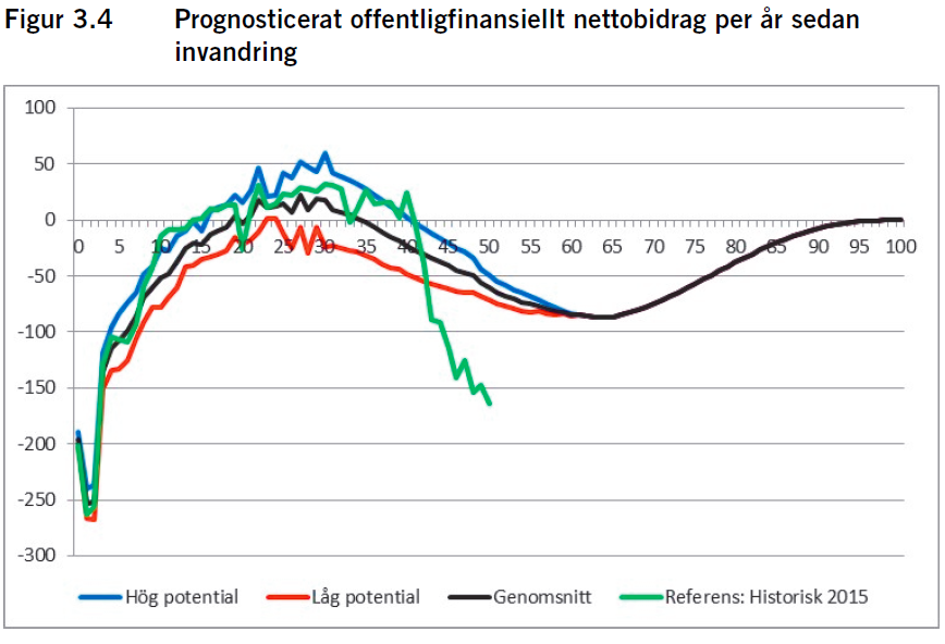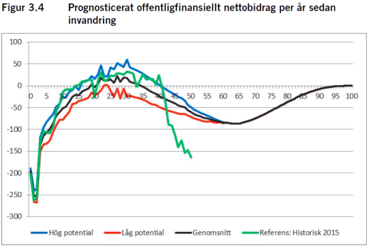 För en arbetskraftsinvandrare så blir det plus från dag 1. Där finns inte ”skulden” från uppväxten. Även lågavlönade arbetskraftsinvandrare går plus pga detta. (Därför är det lite irrationellt av S att försöka hindra det).