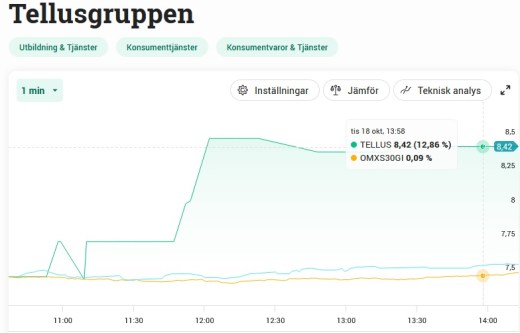 I figuren visas dagens (den 18e oktober 2022) kursutveckling för skolföretaget Tellusgruppen med Lotta Edholm, som under dagen utnämndes till skolminister, i styrelsen. Som synes sköt bolagets börskurs i höjden i samband med att utnämningen annonserades. Gul linje visar generalindex och blå linje skolföretaget Academedia som alltså är i delvis samma bransch som Tellusgruppen. Som synes låg dessa jämförelsekurser stilla under dagen. Det verkar således som om åtminstone marknaden tycker att det finns ett värde för företag av att ha politiska kopplingar, även i Sverige. Börskurser är emellertid rörlig materia så vi får se hur det hela utvecklas.